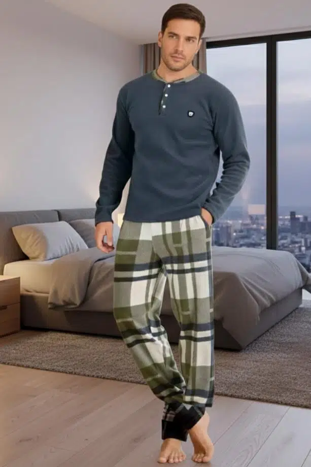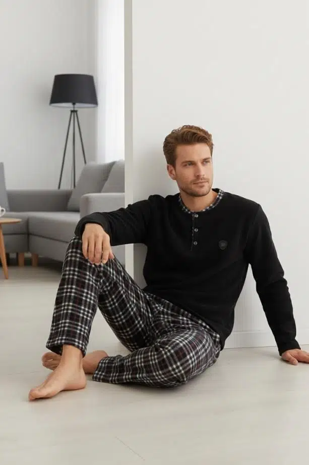 Soğuk kış günlerinin ve uzun gecelerin keyfini, sıcaklık ve stilden ödün vermeden çıkarın. Yetişkin erkekler için özel olarak tasarlanan bu pijama takımı, evdeki konforunuzu bir üst seviyeye taşıyor.