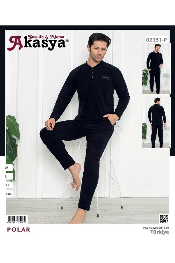 Polar kumaştan üretilmiş bu erkek alt-üst pijama takımı, kış sezonu için yüksek ısı yalıtımı ve yumuşak doku avantajı sunar. Uzun kollu tasarımı sayesinde soğuk hava koşullarında maksimum koruma sağlar.
