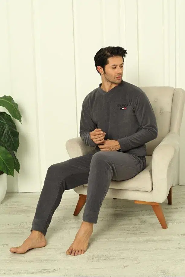 Polar kumaştan üretilmiş bu erkek alt-üst pijama takımı, kış sezonu için yüksek ısı yalıtımı ve yumuşak doku avantajı sunar. Uzun kollu tasarımı sayesinde soğuk hava koşullarında maksimum koruma sağlar.