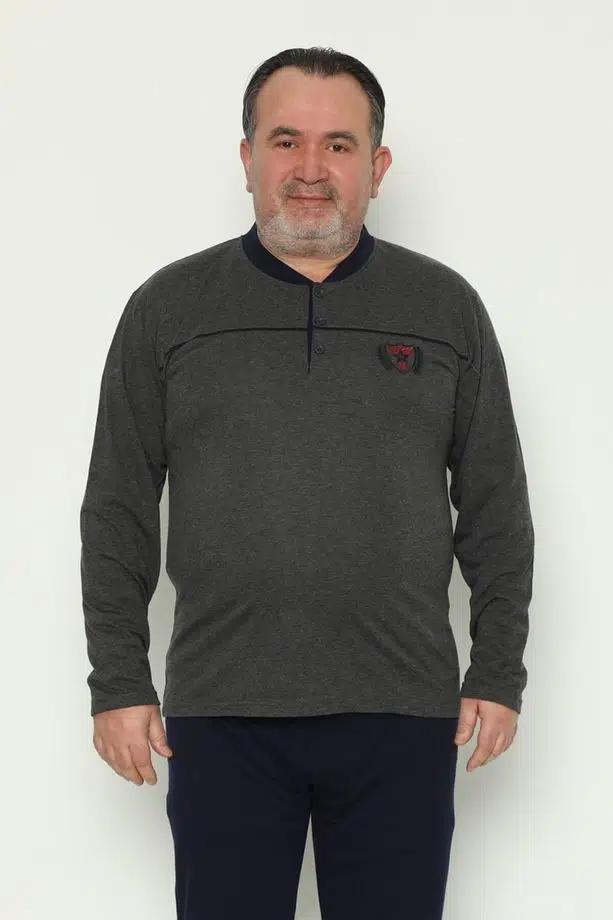 Etiketler | Erkek Uzun Kollu Cepli ve Yaka Düğmeli Battal Beden Penye Pijama Takımı 2392 |