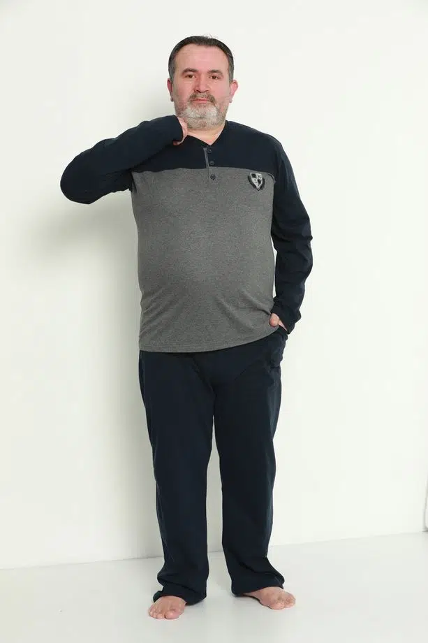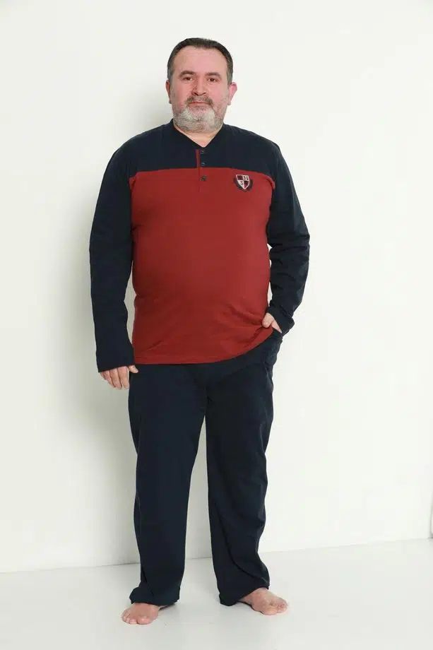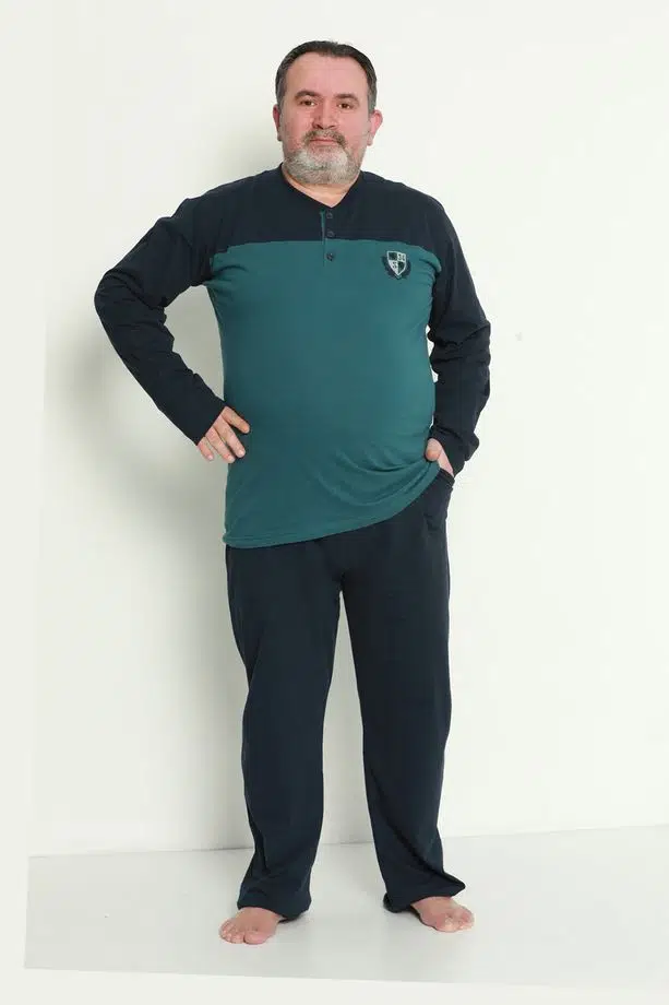 Etiketler | Erkek Uzun Kollu Cepli ve Yaka Düğmeli Battal Beden Süprem Pijama Takımı 1764 |