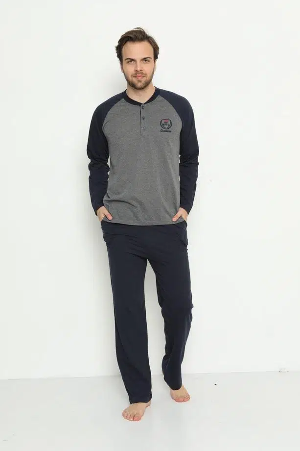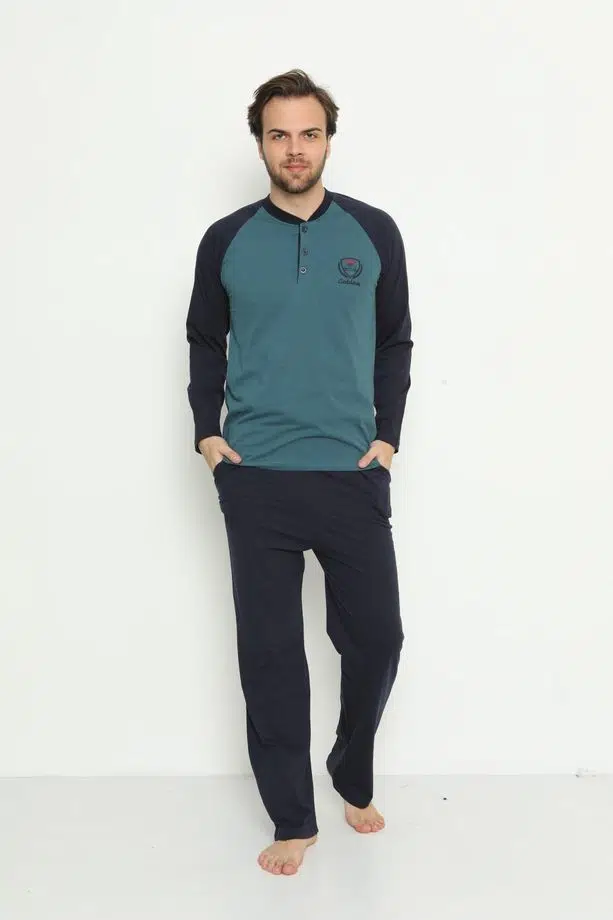 Etiketler | Erkek Uzun Kollu Cepli ve Yaka Düğmeli Süprem Pijama Takımı 01737 |