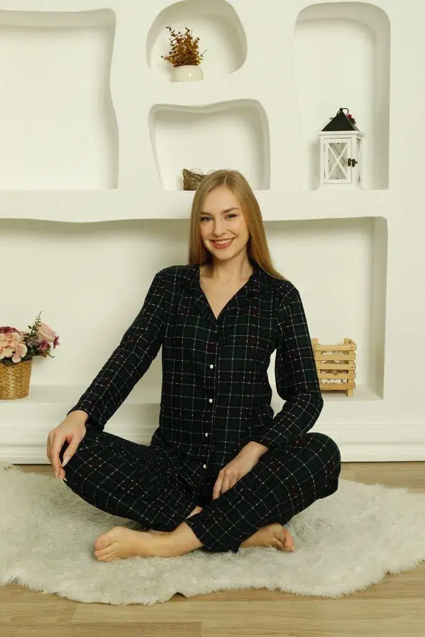 Etiketler | Kadın Cepli Boydan Düğmeli Ekoseli Süet Pijama Takımı 2311 |