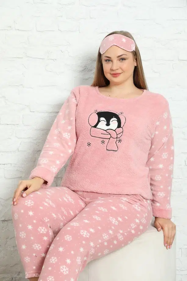 Etiketler | Kadın Uzun Kollu Cepli Pudra Polar Büyük Beden Pijama Takımı |
