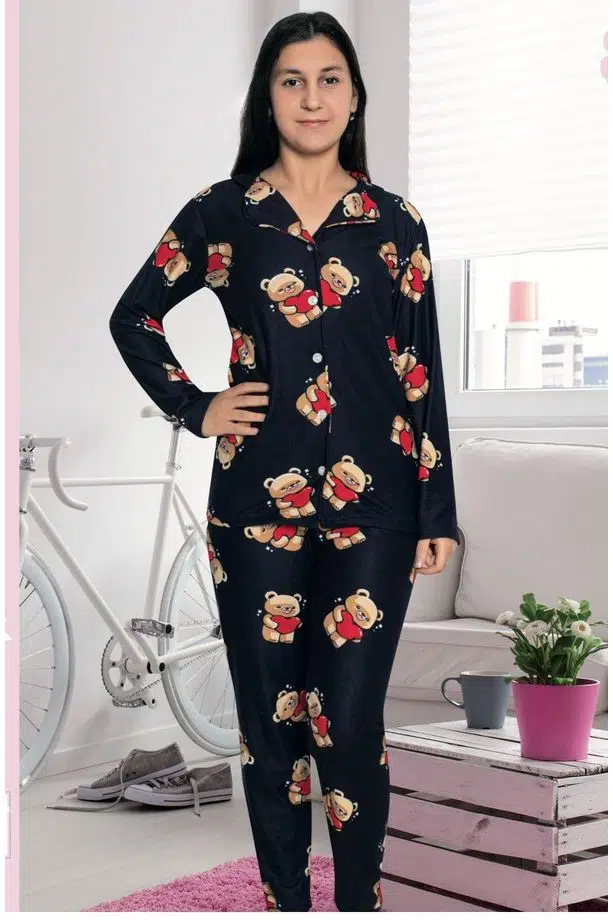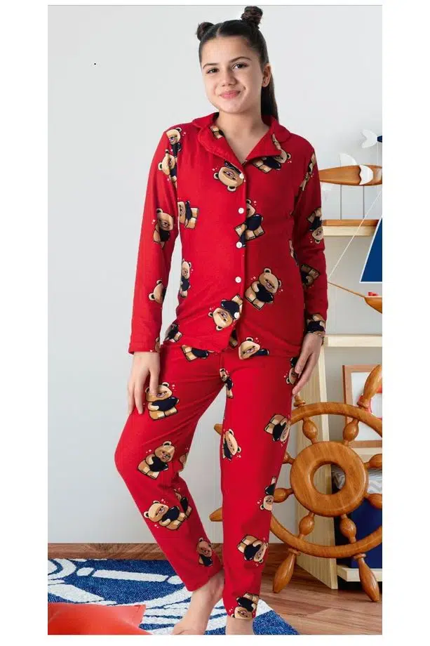 | Etiketler | Kız Çocuk Pamuklu Süet Kırmızı Sevimli Ayıcık Desenli Gömlek Yaka Boydan Düğmeli Uzun Kollu Pijama Takımı TPTM7723 |