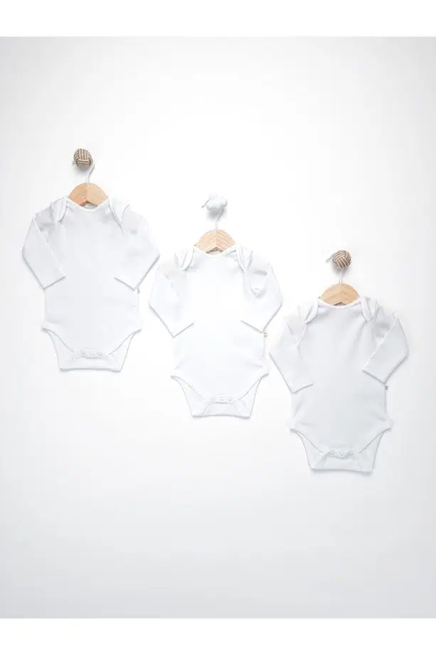 Miošše Baby 3'lü Unisex Bebek Uzun Kol Çıtçıtlı Body