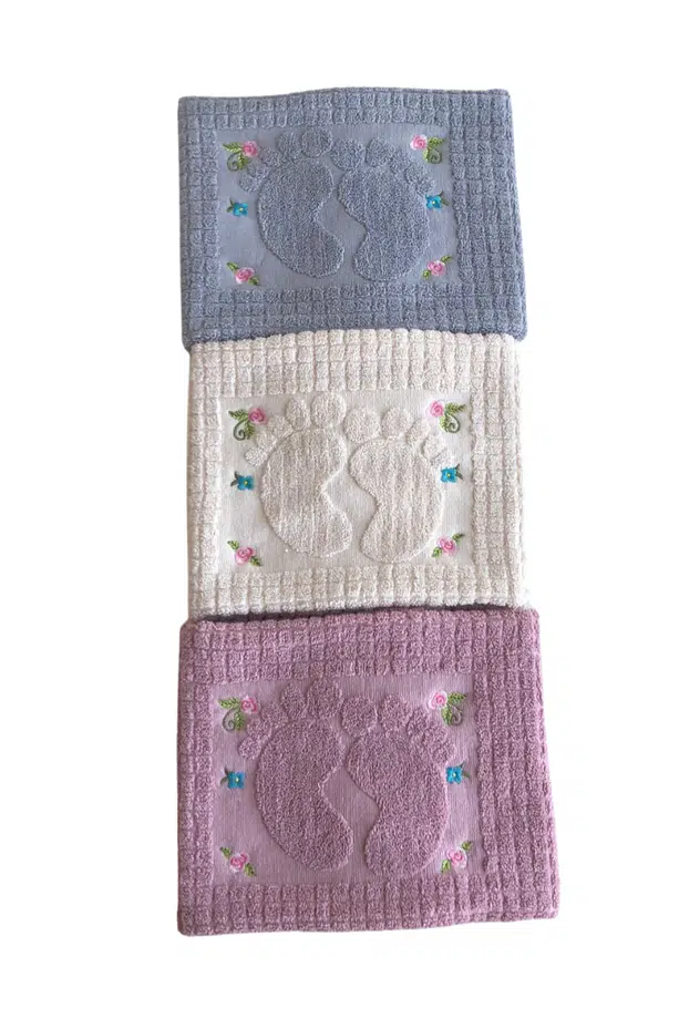 EtiketlerMiosse 3'lü Nakışlı Pamuklu Ayak Havlusu Seti - 50x70 cm Kaymaz Dokulu Banyo Paspası