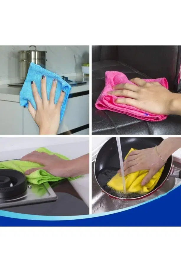 Evdeki her temizlik ihtiyacına cevap veren bu mikrofiber bezler, ister ıslak ister kuru kullanıma uygundur. Mutfaktan banyoya, tezgahtan aynalara kadar her yüzeyi temizlerken, kirleri, tozu ve yağı zahmetsizce yakalar. Aynı zamanda bulaşıkları, mikrodalga fırını ve tencere, tava gibi mutfak eşyalarını kolayca temizler. Gümüş eşyalardaki parmak izlerini ve lekeleri de hızlıca siler, mutfağınızda parlayan bir temizlik bırakır.